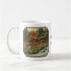 Whitetail doe and buck walking through the forest along a cascading stream of rocks and waterfalls. Realistic artwork created from an original oil painting by wildlife and equine artist Crista S. Forest.