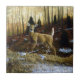 A whitetail doe is startled by your presence. Fall leaves and a light dusting of snow indicate it is late autumn in the forest. Realistic artwork created from an original oil painting by equine and wildlife artist Crista S. Forest.