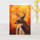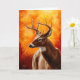 Portrait of a whitetail buck sporting trophy antlers, surrounded by the golden glow of autumn, and a fall coloured reddish brown background. Realistic artwork created from an original oil painting by artist Crista Forest.