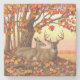 Whitetail Deer Maple Tree Autumn Orange Stone Coaster