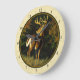 Whitetail Deer buck in autumn sporting a large rack of trophy antlers. Shown against a pale yellow subtle patterned background. Realistic artwork created from an original oil painting by wildlife and equine artist Crista S. Forest.