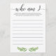 Are you looking for an icebreaker game to play at your baby shower? Play Who Am I with these greenery game cards with watercolor leaves. It's the perfect addition to your garden or botanical themed baby shower and it's sure to be a hit at your party!