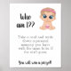 Add fun to your baby shower with this Who Am I? Game sign! Invite guests to guess who's who with sweet baby facts. Perfect printable table decor!