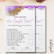 The "Who Knows the Couple Best?" Purple Bridal Shower Game is a fun and interactive way to celebrate the bride and groom while engaging guests. Designed with a stylish purple theme, this game card features a series of lighthearted questions about the couple, encouraging laughter, memories, and friendly competition. Perfect for bridal showers, engagement parties, or couple’s events, it adds a personal touch and helps guests feel more connected to the love story being celebrated. The elegant design and playful format make it both a keepsake and a crowd-pleaser.