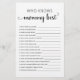 Purchase this editable game and enjoy high quality Who knows Mummy Best card for your event! Baby Shower Activities. Personalised template for your Baby shower party. Enter your funny questions! Black and White design.