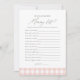 Have baby shower guests participate in a game of 'Who Knows Mummy Best' with this elegant game card, featuring pink gingham and grey typography.