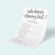 Have some fun at your shower with this fun little "test" to see who knows the mummy best! Add your own questions and personalised text using the template form. Use the "Customise Further" feature to change the background colour to match your party theme. Use the matte paper option for writing on.