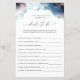 Have a beautiful and fun bridal shower with our coordinating bridal shower games! "How Well Do You Know the Bride To Be" game cards with exquisite watercolor starry night, constellations sky, and modern handwritten calligraphy details. Ability to change the questions using the template text boxes. Personalise the back with their name and date. Flyer style paper quality. One sheet equals one game card. Design matching our Celestial Bridal Shower invitations. More matching games are also available. Part of our "Mystic Garden Celestial" collection with many coordinating products available. Visit the entire collection at: https://www.zazzle.com/collections/mystic_garden_celestial_collection-119823869554047930 (Bridal shower invites and games are located at the bottom of the collection).