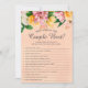 Who knows the couple best bridal shower game featuring a beautiful floral bridal shower design featuring a gorgeous bouquet of peach, pink, yellow & white flowers set on a light peach background.