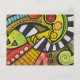 Contemporary watercolor painting with a graphic, impressionistic abstract style in bold fall colours. Has a touch of tribal influence with modern markings and non-representational subject matter. Modern, yet calling forth ancient imagery and symbols.