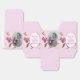 Pink square classic-style favour box with a vintage Alice in Wonderland image in a pink framed oval, on the front and back, of Alice meeting the Caterpillar who is sitting on a mushroom smoking his hookah pipe, on a background of pink apple blossoms and a pink fanciful butterfly. The sides have the image of a pink framed oval on a background of pink apple blossoms and a pink fanciful butterfly, and customisable text that reads “Thank you for celebrating with me in Wonderland!" See the entire Wonderland Favour Box collection in the PARTY FAVORS section.
