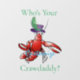 Who's Your Crawdaddy? Red boiled crawfish wearing a purple hat with feather to personalise