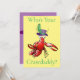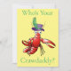 Who's Your Crawdaddy? Red boiled crawfish wearing a purple hat with feather to personalise