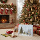 This magical illustration depicts a classic Whoville Christmas celebration centered around the annual Christmas Tree Contest! The scene is snowy and festive, featuring a massive, fully decorated Christmas tree next to the redeemed Grinch (wearing a scarf) and his loyal dog, Max. Smaller, creatively decorated trees line the way to the whimsical Judging Stand, where the Whos gather to decide the winner. This detailed graphic perfectly captures the communal joy and spirit of friendly holiday competition!