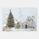 This magical illustration depicts a classic Whoville Christmas celebration centered around the annual Christmas Tree Contest! The scene is snowy and festive, featuring a massive, fully decorated Christmas tree next to the redeemed Grinch (wearing a scarf) and his loyal dog, Max. Smaller, creatively decorated trees line the way to the whimsical Judging Stand, where the Whos gather to decide the winner. This detailed graphic perfectly captures the communal joy and spirit of friendly holiday competition!