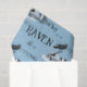 A fun quotation from the Mad Hatter in "Alice in Wonderland" by Lewis Carroll, the riddle "Why is a Raven like a Writng Desk?", in fabulous fonts, appears along with vintage images of a raven and a hand writing with a fountain pen on a cool blue background. Matching items and many other Alice inspired designs are available in my Zazzle store.