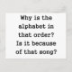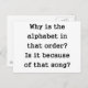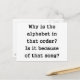 “Why is the alphabet in that order? Is it because of that song?” What came first: the alphabet or the song?  Great for children and adults alike.