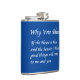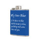 The flask itself is fine. It’s a cheap flask, obviously bought in bulk, however am prepared to overlook that. Given that it is a personalized item, I would have liked to have seen gift boxing instead of the generic packaging. Terrible printing, and/or quality. It’s a cheap, tacky vinyl. It is not cut straight and is also applied in a way that it is overhanging the bottom, causing the glue to catch on items and it will eventually roll and tear, damaging the wrap.