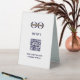 Upgrade your customer experience with our customisable Wi-Fi access display sign. Featuring a simple clean white design with navy blue typography and a scannable QR code for effortless connectivity, this professional dual-sided tabletop sign allows guests to connect to your network without the hassle of manually entering passwords. Perfect for any business space, the sign prominently displays the network name and password for those who need it. Personalise with your logo to enhance brand visibility. Made with durable materials, it's designed to blend seamlessly into any professional setting.