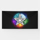 Artistically drawn, luminous pentagram with five magical elements, water, earth, fire, astral, air on black background. Wiccan pentagram. Wicca