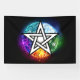Artistically drawn, luminous pentagram with five magical elements, water, earth, fire, astral, air on black background. Wiccan pentagram. Wicca