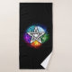 Artistically drawn, luminous pentagram with five magical elements, water, earth, fire, astral, air on black background. Wiccan pentagram. Wicca