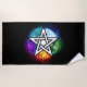 Artistically drawn, luminous pentagram with five magical elements, water, earth, fire, astral, air on black background. Wiccan pentagram. Wicca