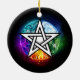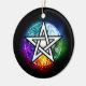 Artistically drawn, luminous pentagram with five magical elements, water, earth, fire, astral, air on black background. Wiccan pentagram. Wicca