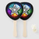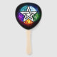 Artistically drawn, luminous pentagram with five magical elements, water, earth, fire, astral, air on black background. Wiccan pentagram. Wicca