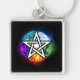 Artistically drawn, luminous pentagram with five magical elements, water, earth, fire, astral, air on black background. Wiccan pentagram. Wicca