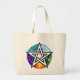 Artistically drawn, luminous pentagram with five magical elements, water, earth, fire, astral, air on black background. Wiccan pentagram. Wicca