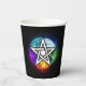 Artistically drawn, luminous pentagram with five magical elements, water, earth, fire, astral, air on black background. Wiccan pentagram. Wicca