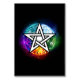 Artistically drawn, luminous pentagram with five magical elements, water, earth, fire, astral, air on black background. Wiccan pentagram. Wicca