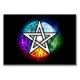 Artistically drawn, luminous pentagram with five magical elements, water, earth, fire, astral, air on black background. Wiccan pentagram. Wicca