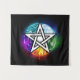 Artistically drawn, luminous pentagram with five magical elements, water, earth, fire, astral, air on black background. Wiccan pentagram. Wicca