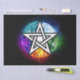 Artistically drawn, luminous pentagram with five magical elements, water, earth, fire, astral, air on black background. Wiccan pentagram. Wicca