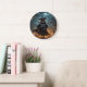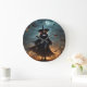 "Wicked Night: Scary Halloween Witch and Her Bats" Large Clock