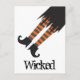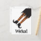 A whimsical Halloween design featuring a tilted witch's lower half with black skirt, striped stockings and black boots. You can edit the text on this post card by replacing the sample text shown in the design template. To change fonts or font size, select the "customise it" button.