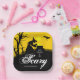 A wicked witch and her cauldron, a black bat, picket fence and bare tree silhouetted against a spooky sky these Halloween party square paper plates feature the words "Eat, Drink & Be Scary." Can be personalised or leave that section blank. MATCHING items in our store.