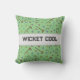 In the heart of the pillow, the words 'Wicket Cool' are elegantly displayed in a cute academic type font, adding a dash of scholarly charm to the delightful croquet design that surrounds it. Each corner of the pillow features hand-drawn croquet mallets and balls, capturing the essence of leisurely afternoons on the lawn and family picnics in the summer.
