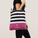 Wide Black Horizontal Stripes Dark Pink Name Daisy Tote Bag