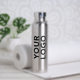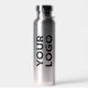Advertise with your wide business logo repeated 3 times around a branded silver water bottle. Replace the sample logo with your own in the sidebar. Your brand symbol can be any shape and colour. This is eco friendly swag your employees, customers and clients will keep and appreciate!
