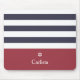 Wide Navy Blue Horizontal Stripes Red Name Daisy Mouse Pad