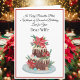This elegant watercolor and pen illustration features a decadent chocolate cake with smooth vanilla frosting, adorned with poinsettias, holly, and shimmering Christmas ornaments. A heartfelt tribute to a beloved wife’s December birthday—celebrating the beauty, warmth, and joy she brings to every season and every moment.