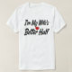 Shirt with I'm my wife's better half in 3D black text. Shirt available in several styles and colours with long or short sleeves.