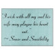 Begin your day with the unforgettable words of Jane Austen, everyone's favourite writer of romance novels. This fully customisable design features the quote from her Regency book “Sense and Sensibility”, “ I wish with all my soul his wife may plague his heart out.” ~ Sense and Sensibility. Those of us who have ever been dumped (or jilted!) by a former lover can certainly agree.