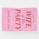 This design features bridal shower theme "She's the Wife of the Party" set on a soft pink background with striking red text, the design feels contemporary, chic, and effortlessly elegant. This product can be easily personalised. If you need help with the customisation of the product or need matching products kindly please contact me via Zazzle.