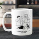 Cartoon joke on a mug. Funny Cartoon where a wife complains to her friend because she says her husband doesn't even try to get wooed by another. Funny mug. Add the name of the person you are buying the mug for.