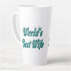 Latte mug with World's best wife in 3D blue-green text. Mug available in several styles and colours.