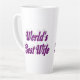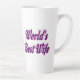 Latte mug with World's best wife in 3D purple text. Mug available in several styles and colours.